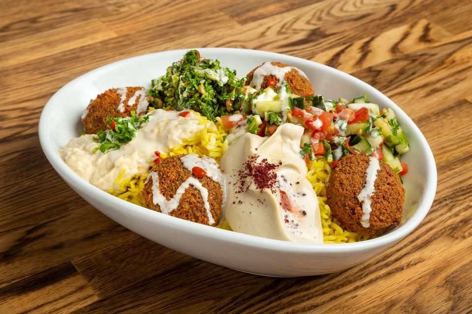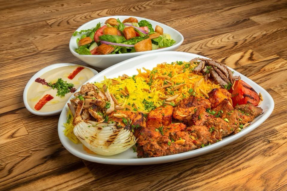 Kabobs, falafel, hummus, baba ghanoush, and more.